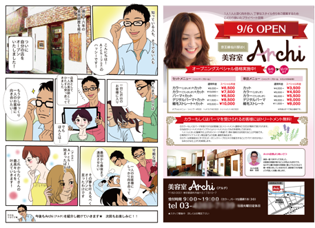 ▲調布市 美容室のチラシに漫画を組み合わせた例